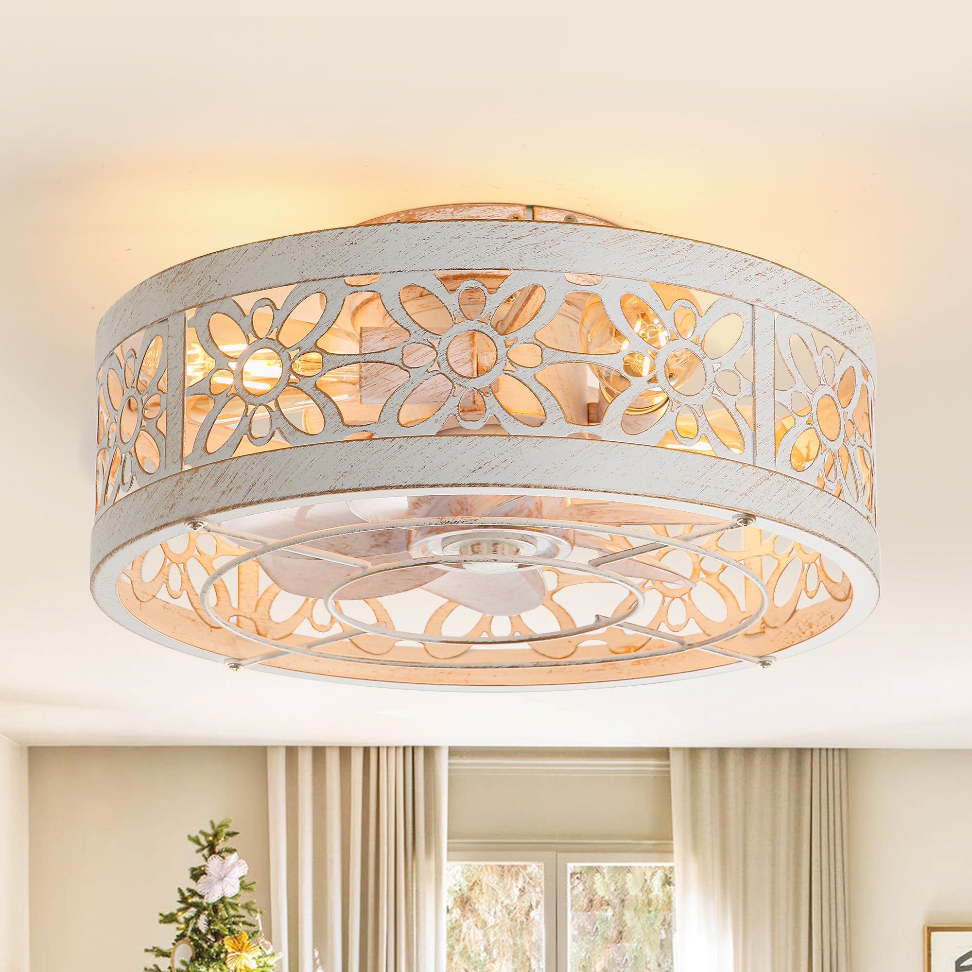 This fandelier is small enough not to take up a large footprint and large enough to provide lighting and the cooling of a fan. Elegant and contemporary. 7 reversible fan blades provide comfortable air circulation, It features a 6-speed variable remote control and light control function.Removable bottom cover for easy cleaning of the fan blades and replacing bulbs. Independent light allows for light and fan working together or separately. The overall color is white, with a touch of golden paint applied,Some people may think it's gold/pink/brown. Real beautiful fixture though.