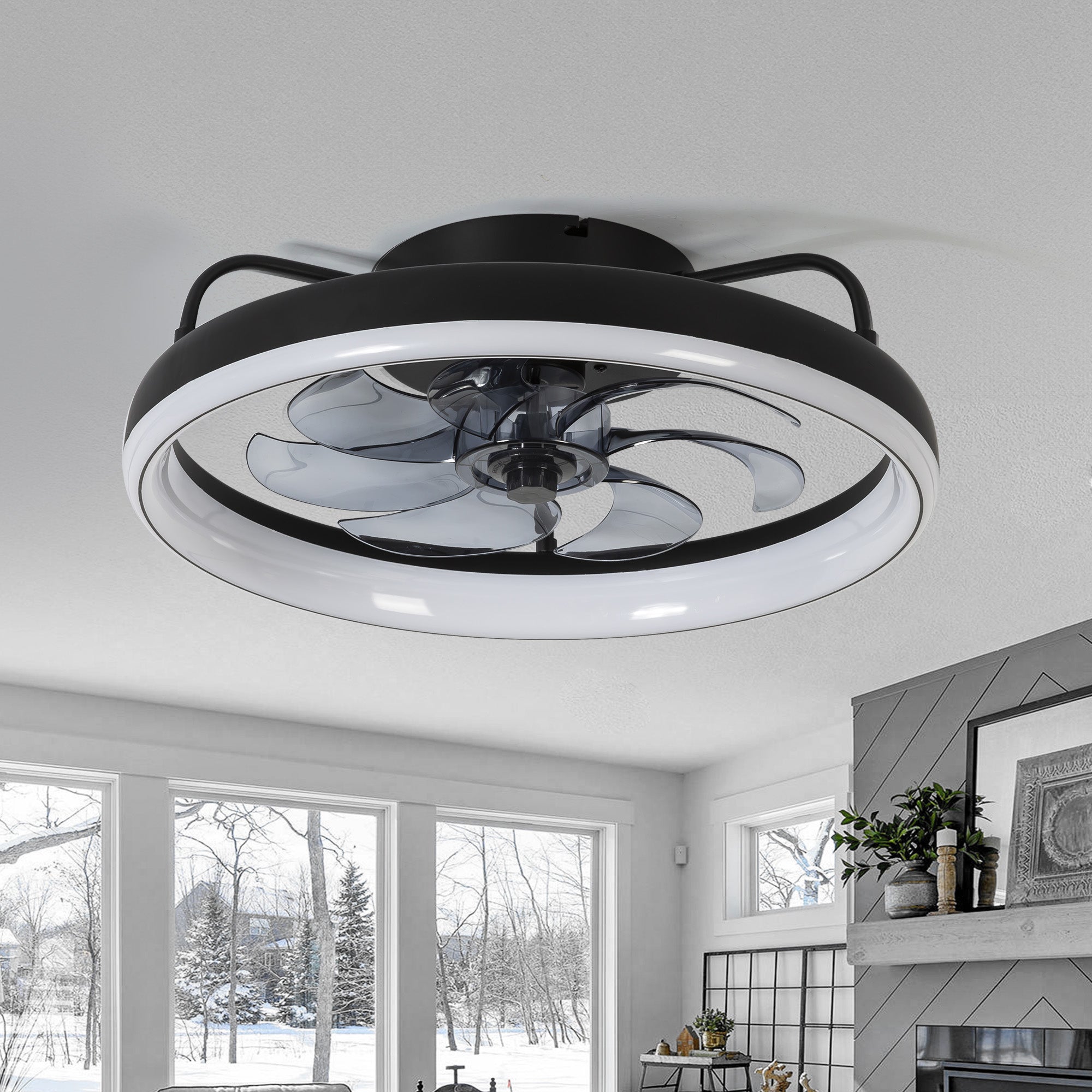 This 19 inch ceiling fan with led ceiling light chandelier is enough for small/medium rooms up to 75-175 sq.ft. fit well such as outdoor patio, garage, farmhouse, indoor living room, dinning room, bedroom, office, shop, studio, bar etc. The fan and the light can be controlled separately. 6 speed gears and 3 color temperatures (3000K, 4500K, 7000K ).