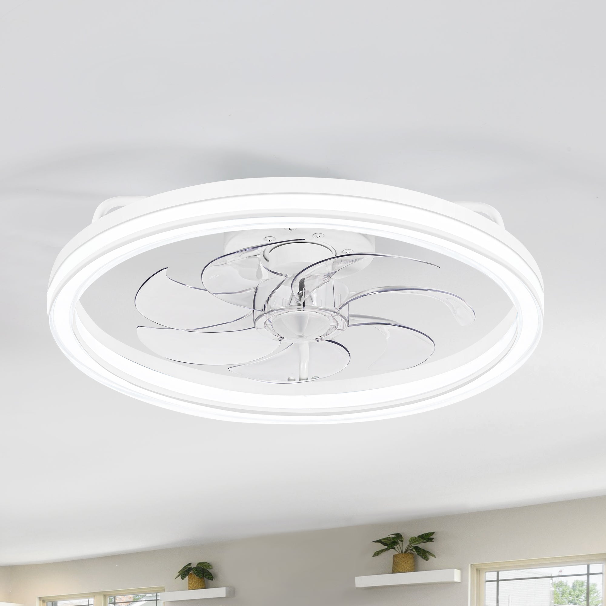 Enhance your home's comfort with our Low Profile Ceiling Fan. This stylish and functional fan features a built-in light and remote control for ultimate convenience. The color-changing LED lights provide adjustable brightness to suit any mood or occasion. With 6 speeds to choose from, you can easily find the perfect airflow for your space. The timing feature allows you to set a specific duration for the fan to operate. The reversible blades offer year-round versatility by allowing you to switch between a cool breeze in the summer and warm air circulation in the winter. Its compact 20" size is ideal for small rooms and spaces. The elegant design adds a touch of sophistication to any décor. Upgrade your space with this reliable and efficient ceiling fan.
