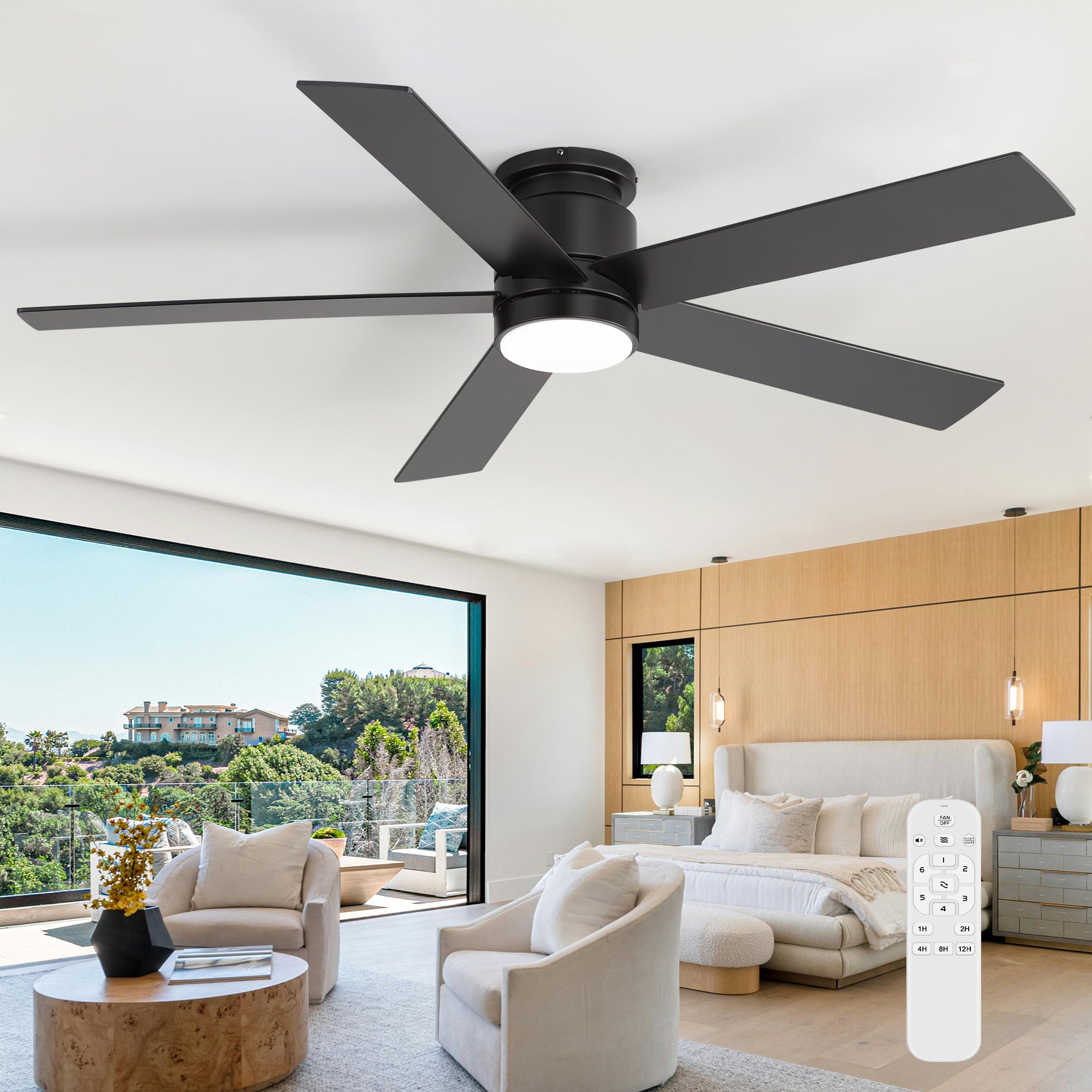 42"/52" Ceiling Fan with Light, Matte Black Finish, 5 Black Blades, Acrylic 18W LED (3 Color Temps with Memory), Quiet DC Motor, 6 Speeds, Forward/Reverse Airflow, Timer, Full Remote Control Included