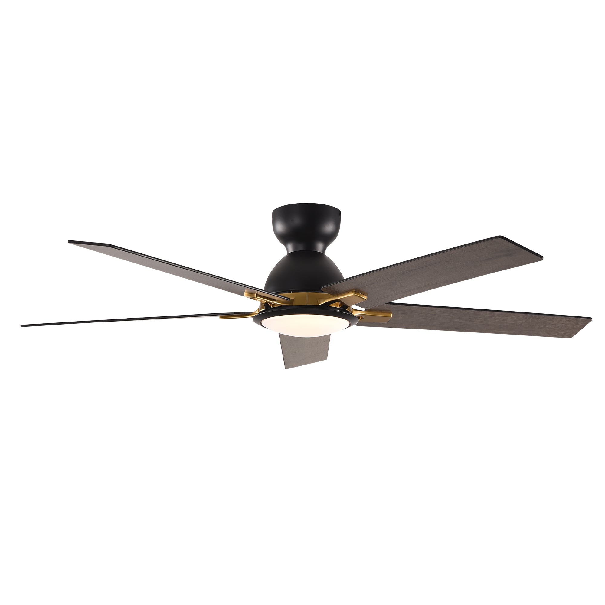The 52" ceiling fan features an energy-saving 6-speed, reversible DC motor housed in a clean body with architectural blade arms supporting 5 blades, 3000K LED Light, and is easily controlled with the included remote control. Super quiet DC motor runs 70% more efficient than traditional AC fans.