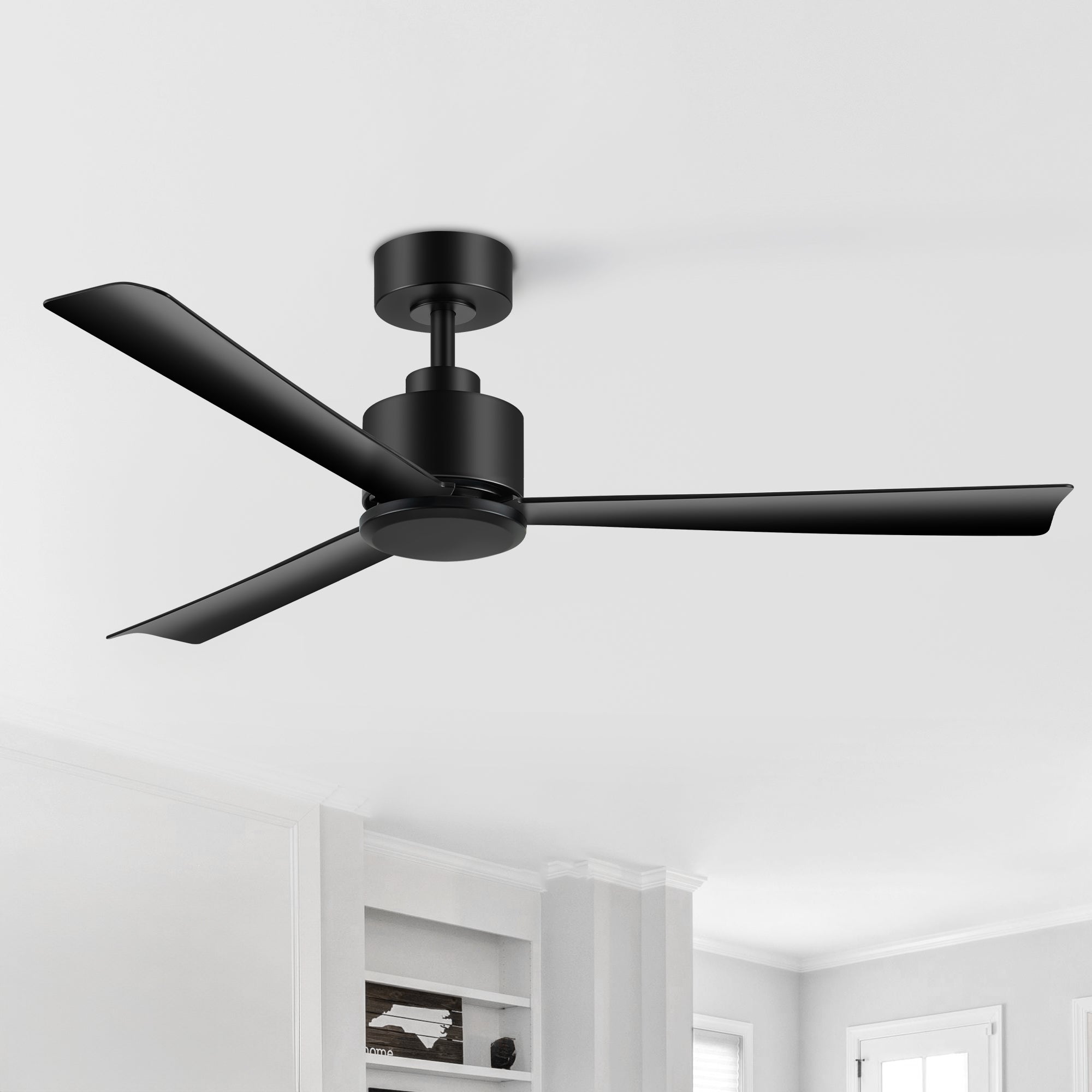 -Black or white ceiling fans, with a sleek modern silhouette, a DC motor and super energy-efficiency, feature curved blades and elegantly simple housing