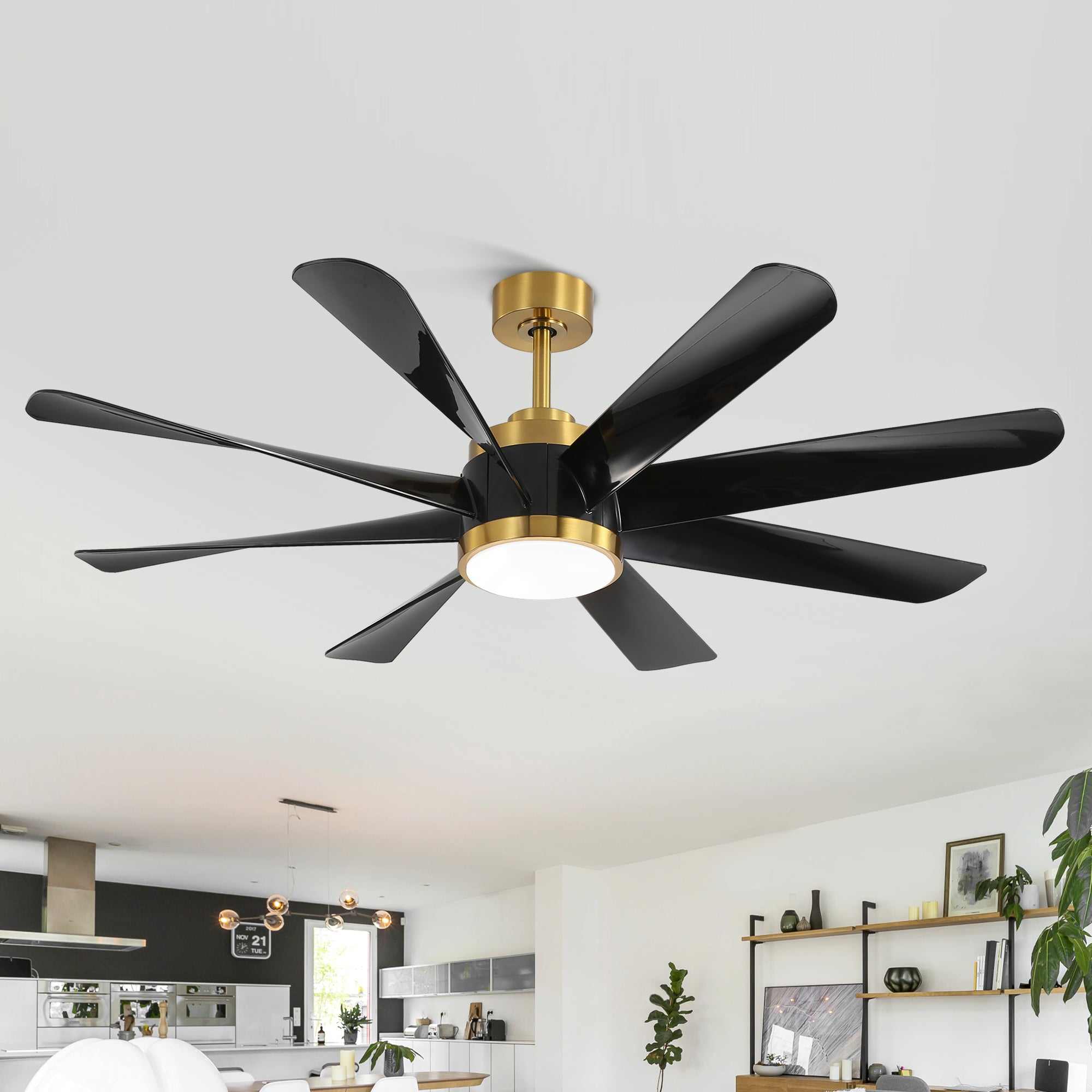 - **8 Reversible Blades & Quiet DC Motor:** This ceiling fan is powered by a super silent DC motor, providing strong airflow with minimal noise. The eight reversible blades allow for seasonal use, offering a cooling downward breeze in the summer and circulating warm air upward in the winter to keep your room comfortable year-round.