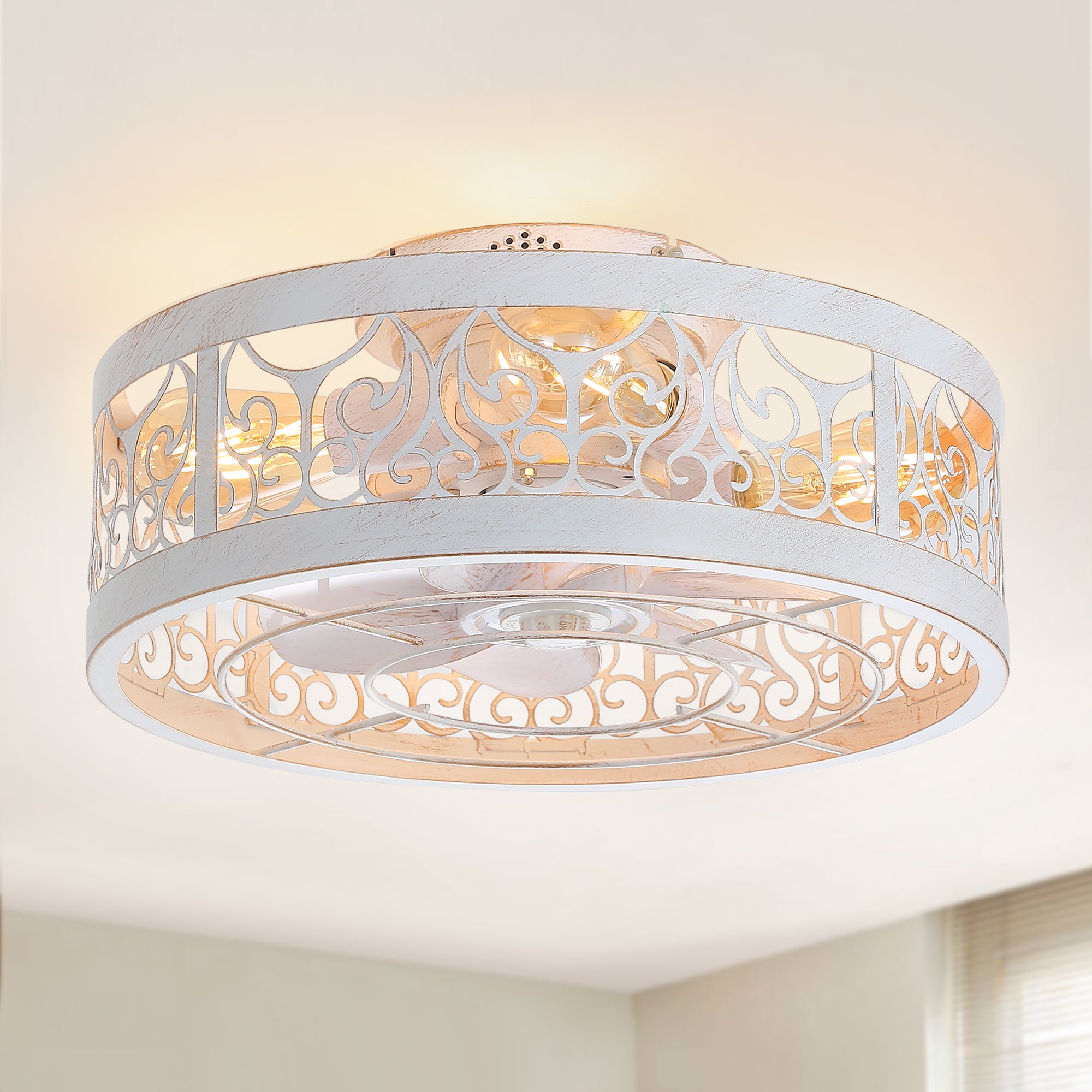 16.5-in Vintage Distressed White Low Profile Ceiling Fan with Light and Remote Control(7-blade)