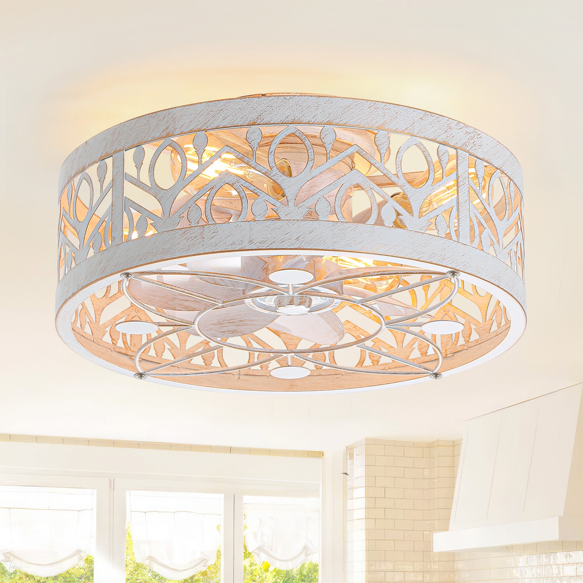 16.5-in Vintage Distressed White Low Profile Ceiling Fan with Light and Remote Control(7-blade)